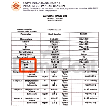 Keunggulan PrimeGoat bukan hanya klaim. Setiap kandungan EPA dan DHA telah teruji dan terbukti melalui hasil laboratorium, menjamin asupan nutrisi yang berkualitas untuk anak